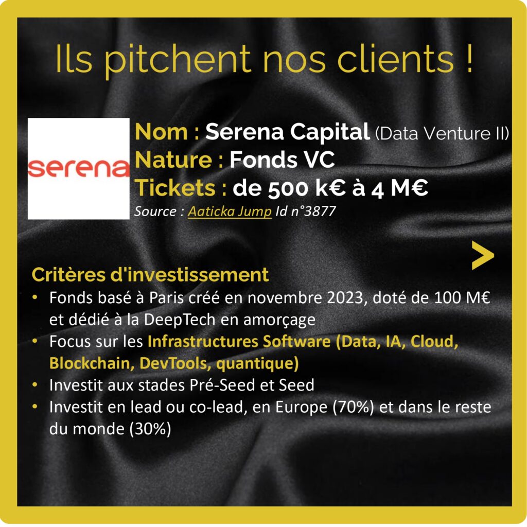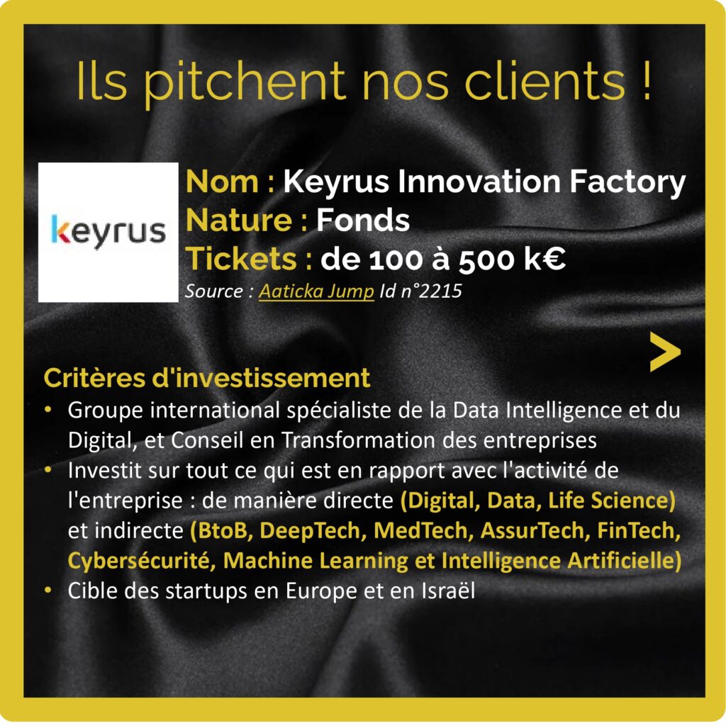 Nous te présentons 8 VC early stage IA dans le carousel joint : keyrus Innovation Factory, The Faktory Fund, Asterion Ventures (fonds F3 Inception), @Serena Capital (fonds Data Venture II), OneRagtime, APOK Invest OSS Ventures, Sopra Steria Ventures